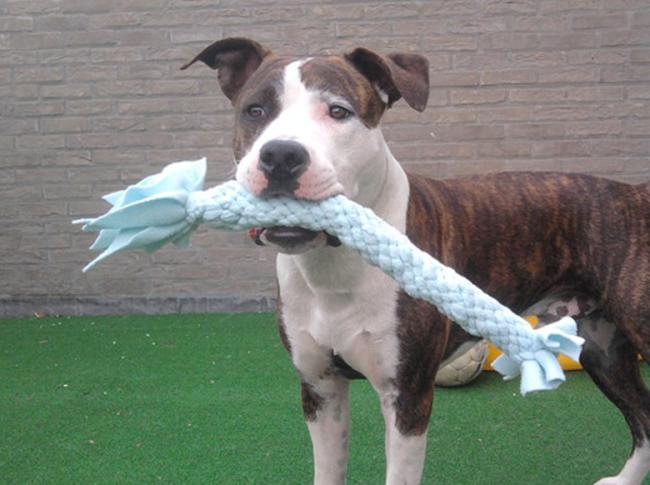 Für diesen Klassiker verwendest Du am besten eine alte Fleecedecke oder eine Jeanshose. Schneide den Stoff in Streifen und flechte diese sehr eng. Mach einen festen Knoten ans Ende, und schon ist das Spielzeug fertig! Du könntest eventuell auch einen Ball o.ä. daranknoten.